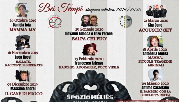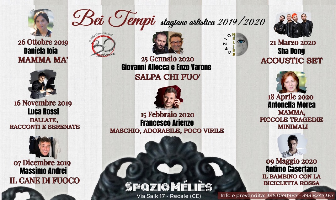 RECALE – Venerdì 27 settembre 2019, con inizio alle ore 18:30, presso lo Spazio “Melies”, sito in Recale alla Via Salk nr. 17, l’Associazione culturale “30Allora” terrà la conferenza stampa sulla nuova stagione teatrale 2019/2020. Otto bellissimi appuntamenti con degli artisti professionisti che avranno l’onore di vedere sul palco del loro piccolo teatro sotto la direzione artistica di valeria D’AMORE, di San Nicola la Strada. Dalla prossima settimana parte la prevendita dei biglietti.