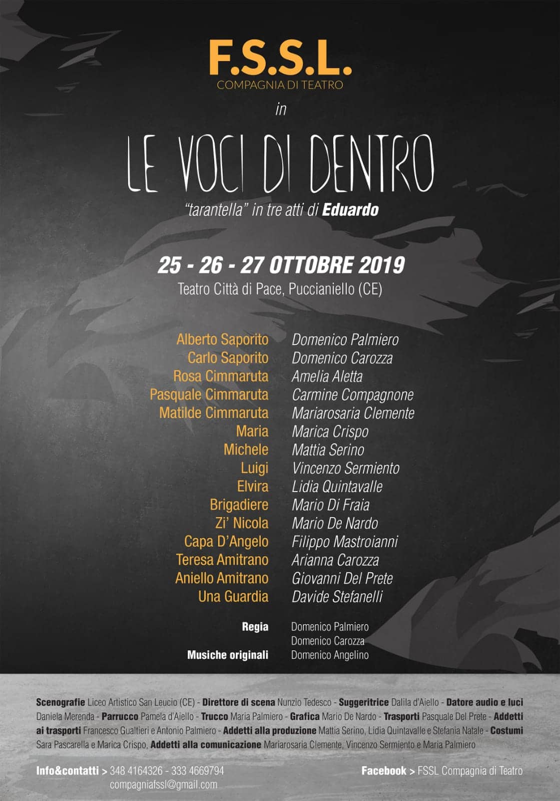 La commedia andrà in scena il 25, 26 e 27 ottobre 2019 al Teatro Città di Pace di Caserta per la regia di Domenico Palmiero e Domenico Carozza e le musiche di Domenico Angelino. La prevendita dei biglietti, del costo di soli 5 (cinque) euro, è ufficialmente aperta. Per info e prenotazioni chiamare il 348 41 64 326 / 333 46 69 794.