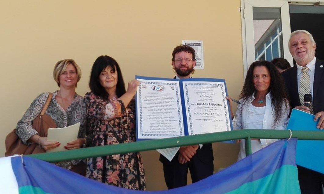 La scuola diretta dalla grande Preside Rosanna BIANCO, dopo essere stata insignita (10 anni or sono) della “Colomba Ambasciatrice di Pace”, con l’adesione alla mobilitazione della Fiaccola della Pace, ha ricevuto l’ennesimo titolo di “Scuola di Pace del III Millennio” mediante il “Patto di Pace” siglato tra il Movimento Internazionale per la Pace e la Salvaguardia del Creato III Millennio attraverso le mani della Presidente Agnese GINOCCHIO ed il 4° Circolo didattico attraverso la Dirigente scolastica Rosanna Bianco.