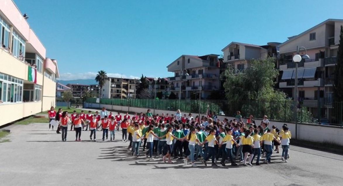 Gli alunni, vestiti con mantelline riportanti tutti i sette colori dell’ Arcobaleno della Pace, nell’area antistante l’edificio scolastico, hanno dato vita ad un “flash – mob” sul tema della Pace e della difesa dell’ambiente. Presenti anche molti genitori degli alunni a sostenere l’importante iniziativa. A seguire ci si è diretti presso il giardino della scuola per la cerimonia della piantumazione dell’Albero della Pace a cui hanno partecipato la Dirigente scolastica Rosanna Bianco, il Sindaco Lettieri, l’Assessore Petrella, la Presidente del Movimento per la Pace Agnese Ginocchio, il vice Presidente Ponsillo, e gli alunni rappresentanti della scuola.