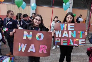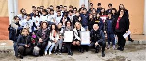 La manifestazione si è aperta con un omaggio musicale curato dall’Orchestra costituita dagli alunni della scuola, alla guida dei loro docenti di musica, quindi subito i saluti della Dirigente scolastica Maiello, che ha ricordato l’importanza di questi progetti educativi che hanno l’obiettivo di educare i giovani ai valori fondanti della Pace e della convivenza civile, a seguire quello del vice Sindaco, assessore Avv Giovanni Battista Di Matteo e della Presidente del Movimento per la Pace Agnese Ginocchio, presente con la socia del Direttivo Rosa Arbolino, che ha ringraziato la Scuola per l’adesione allo storico evento, proprio la Scuola che in questo caso indica la strada e diventa “Maestra” delle discipline della vita.