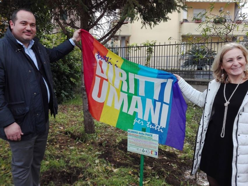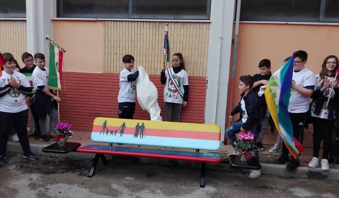 A seguire l’inaugurazione della “Panchina della Pace e della Nonviolenza” riportante tutti i colori della Pace (esattamente come la prima panchina sita nel comune di Alife accanto all’Albero della Pace) e la messa a dimora dell’Albero della Pace, simbolo della mobilitazione della Fiaccola della Pace dedicato a “tutti i caduti e alle vittime delle guerre, stragi, attentati, terrorismo, violenze e mafie” di Macerata Campania e nel mondo, e dedicato “contro ogni crimine e terrorismo ambientale”,dai 100 anni ad oggi. La cerimonia è culminata con la Sigla del Patto di Pace tra il Movimento per la Pace e l’Istituto Comprensivo di Macerata Campania, attraverso il quale è stato consegnato il titolo di “Scuola di Pace del III Millennio”.