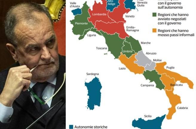 Se la Camera approverà il ddl Calderoli, ciò rappresenterà un tipico esempio di democrazia maggioritaria, dato che una maggioranza parlamentare – peraltro minoranza nel paese – varerà una legge lesiva di principi e diritti costituzionali (articoli 2, 3,5,117 della Carta), che sono sottratti alla sfera delle decisioni delle maggioranze politiche tenute invece a rispettarli. Per questo riteniamo necessario che intervengano o siano attivati gli organi di garanzia costituzionale e giurisdizionali: Presidente della Repubblica, Corte Costituzionale, giudici amministrativi e ordinari. A queste iniziative di carattere giuridico e istituzionale parteciperemo affiancando come sempre quelle di carattere sociale, rilanciando la lotta contro la privatizzazione e liberalizzazione dei servizi pubblici. Un importante risultato politico di questi ultimi mesi di mobilitazione è inoltre che costituzionalisti e forze politiche dell’opposizione si sono pronunciati sulla cancellazione della deforma del Titolo V, da riformulare sopprimendo il comma 3 dell’articolo 116, quello dell’autonomia differenziata. In tanti vogliono distruggere la Costituzione: al Senato lo hanno fatto a gennaio, approvando il testo del ddl Calderoli, senatori e senatrici – 110 in tutto – provenienti per lo più dai partiti della maggioranza, che hanno tradito, in particolare al Sud, i propri elettori e le proprie elettrici, e i cui nomi sono stati scanditi dalla piazza, uno per uno; si sta parlando prioritariamente di Fratelli d’Italia, che – dal “dio, patria e famiglia” – è diventato fervente sostenitore della “secessione dei ricchi”, l’autonomia differenziata, quella che metterà in ginocchio definitivamente il Sud del Paese, inchiodandolo al proprio destino di maggiore povertà e arretratezza rispetto al Nord. Tra qualche giorno alla Camera si ripeterà la stessa musica; con l’aggravante che le immagini che sono state trasmesse dal luogo della rappresentanza solo 24 ore prima del nostro presidio ci dicono che il tricolore e l’inno (tradizionalmente idoli del Partito di maggioranza, Fratelli d’Italia, quello del patto scellerato con la Lega, tu dai l’autonomia differenziata a me, io il premierato a te) diventano concretizzazione della colpevole incoerenza di quanti stanno svendendo l’Italia. Porgere la bandiera al ministro onnipresente, ma sempre silente Calderoli, quello del sedicente Porcellum, quello che ha sentito ma non ascoltato i fiumi di critiche che sono pervenute in sede di audizione parlamentare, sia al Senato che alla Camera al suo ddl, corrisponde oggi ad una provocazione che scatena l’aggressione. Infine, i quasi 6 anni di formazione/informazione/mobilitazione svolte dai Comitati per il Ritiro di ogni Autonomia Differenziata sono serviti a qualcosa. La chiarezza delle nostre parole, inequivocabilmente tratte dalla Carta del ’48 che stanno cercando di distruggere, lo studio, il coraggio, la costanza, la convinzione e, dopo la (S)Veglia laica per la Repubblica, la nostra creatività, hanno una qualche connessione anche con la postura che l’opposizione ha assunto in aula e con la visibilità che il tema sta assumendo. La nostra mobilitazione continua e per questo saremo con le forze di opposizione parlamentare in piazza il 18 giugno, accogliendo con soddisfazione la convergenza sui temi della nota congiunta: “Il Governo Meloni sta forzando la mano e prova a minare le basi democratiche della nostra Costituzione, procedendo a colpi di maggioranza verso l’approvazione dello Spacca-Italia e del premierato”.