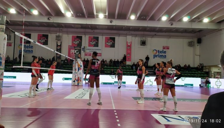 Nel terzo parziale ancora assolo rosanero, con il duo Gray-Alhassan che mettono in difficoltà subito le avversarie. Si procede punto a punto fino al 7 pari, poi la Volalto scalda il braccio ed aumenta il ritmo (11-8) con il primo gap importante. Nonostante gli errori alla battuta, Perugia resta in scia (13-9) con la Gray e Simon che danno vita al primo break positivo (2-16). Bovari intuisce il momento di difficoltà alle sue e chiama il time out che nulla però può: l’errore di Angeloni propizia il match point per le padrone di casa, confermato al video check per il 25-20 finale. Grande festa al Palavignola tra gli applausi dei tifosi e tre punti d’oro per le padrone di casa, che chiudono iniziano così a scalare la classifica.