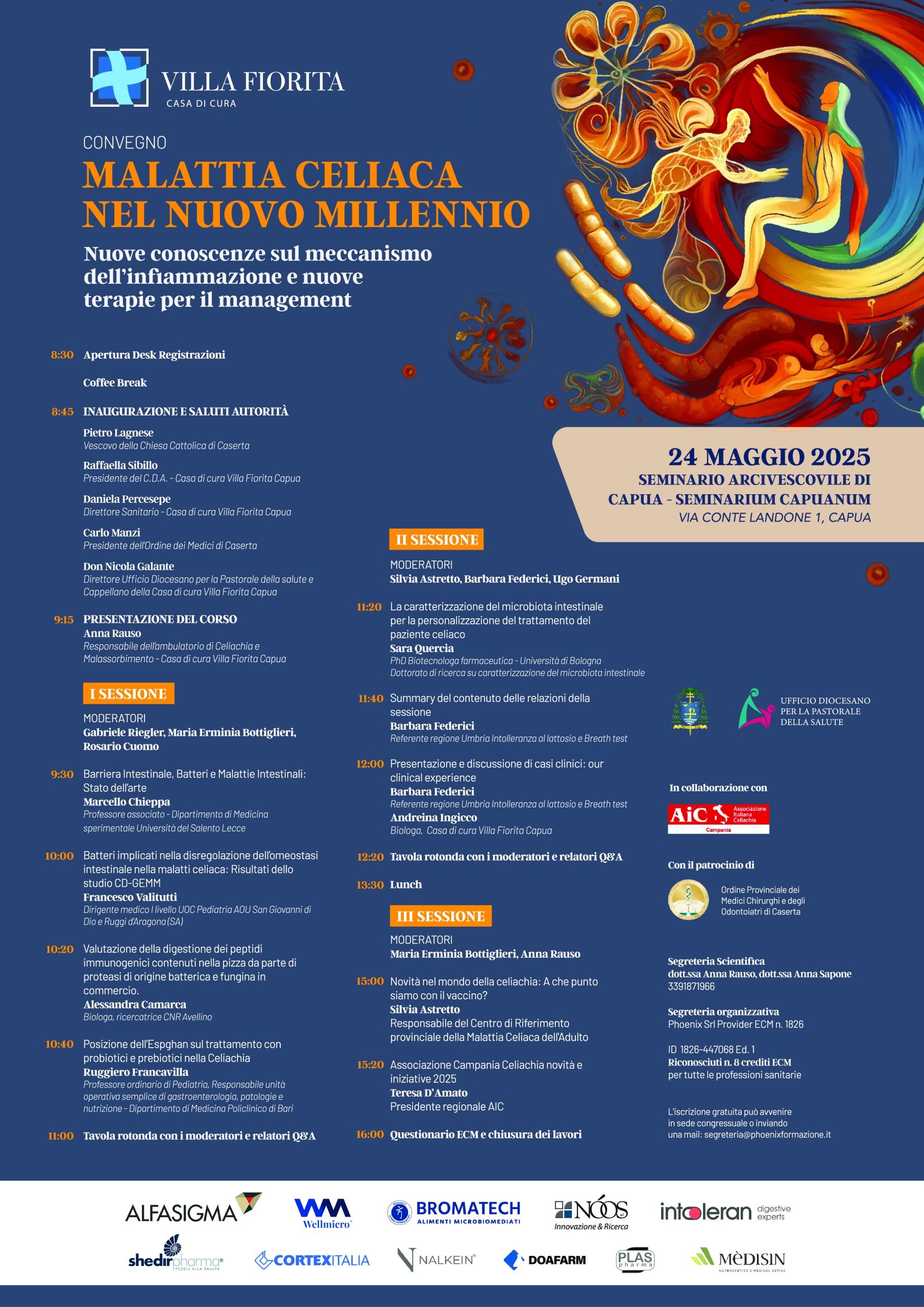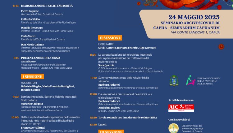 LA MALATTIA CELIACA NEL NUOVO MILLENNIO, CONGRESSO SCIENTIFICO SABATO 24 MAGGIO AL SEMINARIO ARCIVESCOVILE DI CAPUA