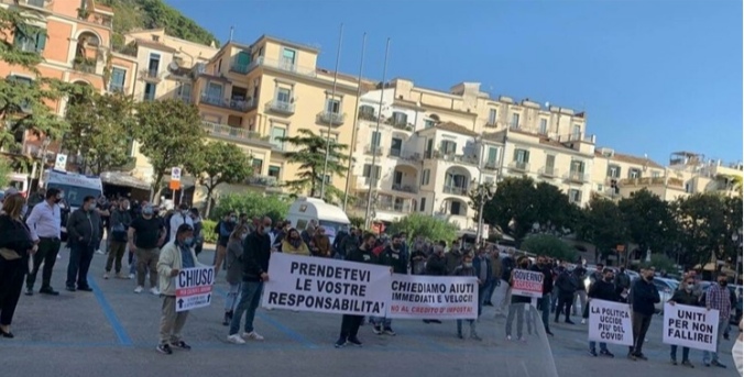 Lo scopo della protesta è stato quello di sottolineare le numerose difficoltà vissute dalle imprese territoriali a seguito della chiusura imminente per la dichiarata zona rossa in Campania.