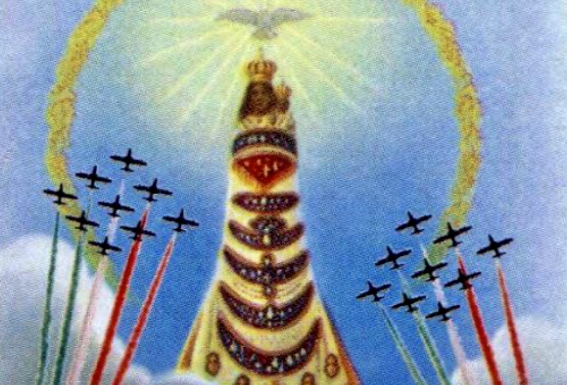 La Madonna di Loreto è Patrona degli Aviatori da quasi cento anni, esattamente dal 1920, quando venne proclamata “Aeronautarum Patrona” da Papa Benedetto XV. La tradizione lauretana del trasporto in volo da Nazareth della Casa di Maria rendeva “ovvia” la scelta della Madonna di Loreto quale Patrona degli aeronauti, cioè di tutti i viaggiatori in aereo e in special modo degli aviatori. Pittori ed ebanisti già nei secoli XVII XVIII raffiguravano la Santa Casa di Loreto sospesa su una nuvola con la Madonna in cima come fosse un pilota ad indicare la direzione.