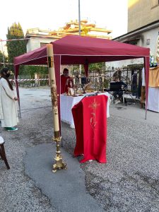Una festa molto sentita che don Marco con i suoi fedeli ha celebrato in piena sicurezza, godendo anche dello spazio antistante la parrocchia di via Appia, per poter accogliere quante più persone possibili. Infatti già alla liturgia del sabato, vigilia di Pentecoste, erano presenti circa 140 persone per questa messa organizzata dal “comitato festeggiamenti della Nostra Signora di Loreto” .