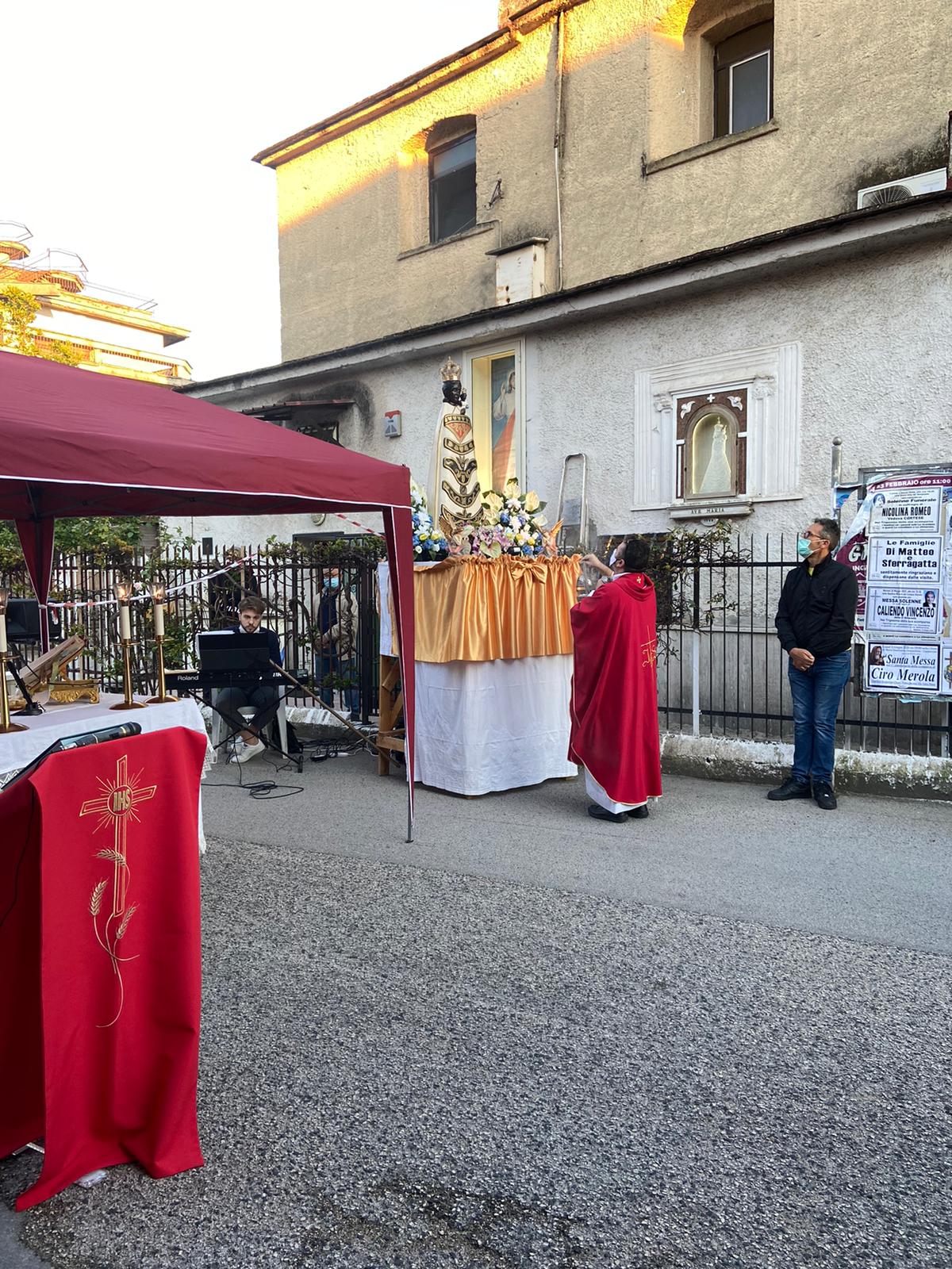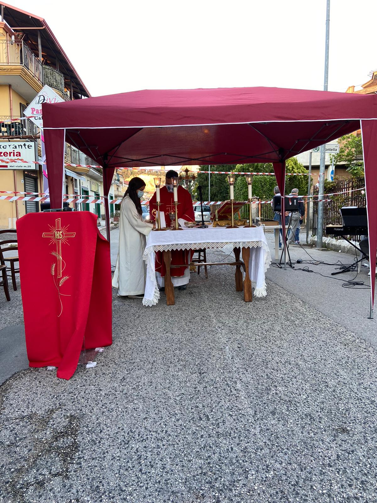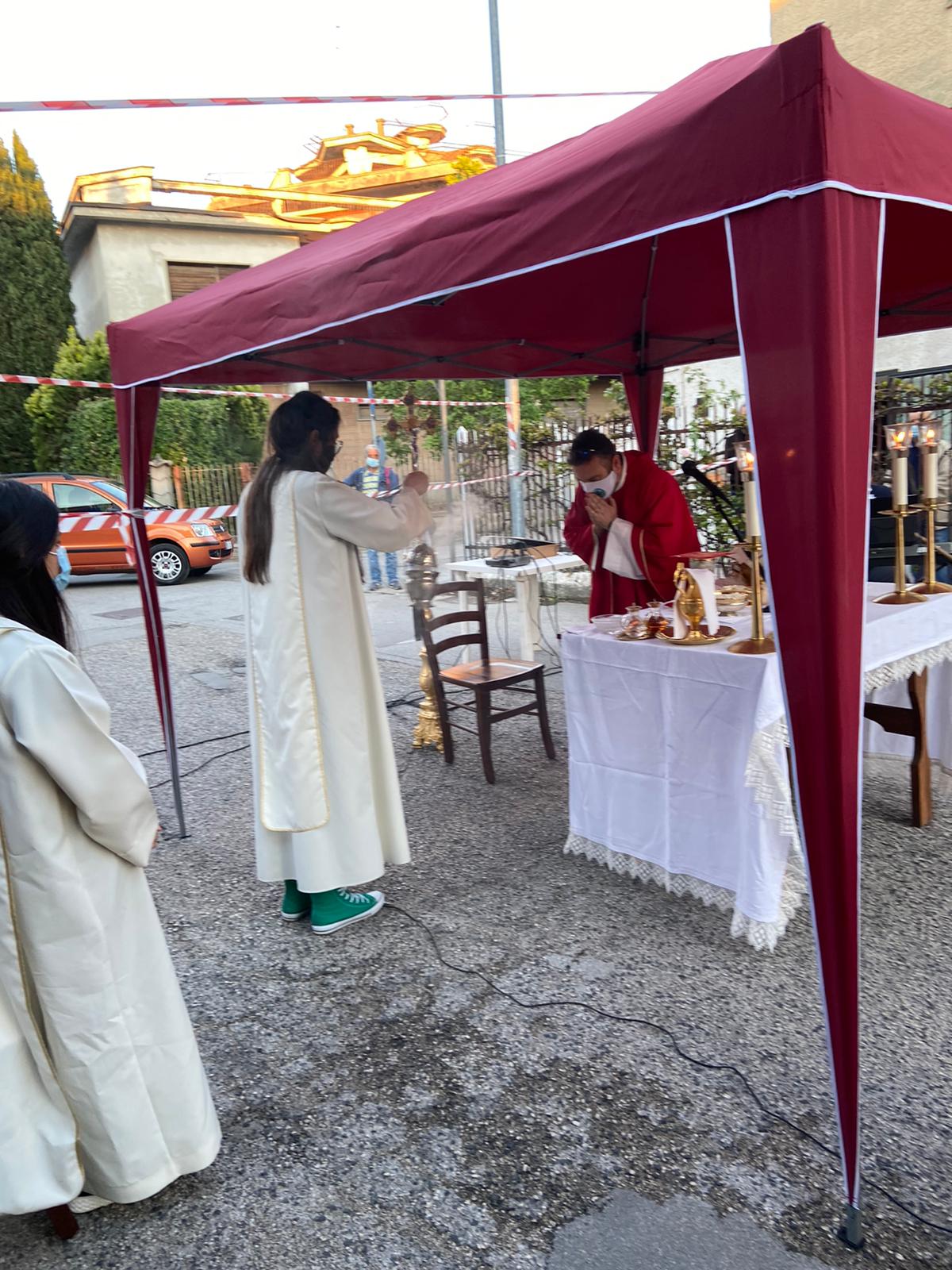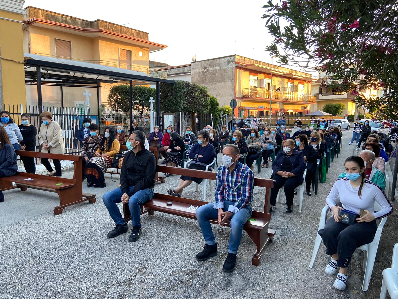 Una festa molto sentita che don Marco con i suoi fedeli ha celebrato in piena sicurezza, godendo anche dello spazio antistante la parrocchia di via Appia, per poter accogliere quante più persone possibili. Infatti già alla liturgia del sabato, vigilia di Pentecoste, erano presenti circa 140 persone per questa messa organizzata dal “comitato festeggiamenti della Nostra Signora di Loreto” .