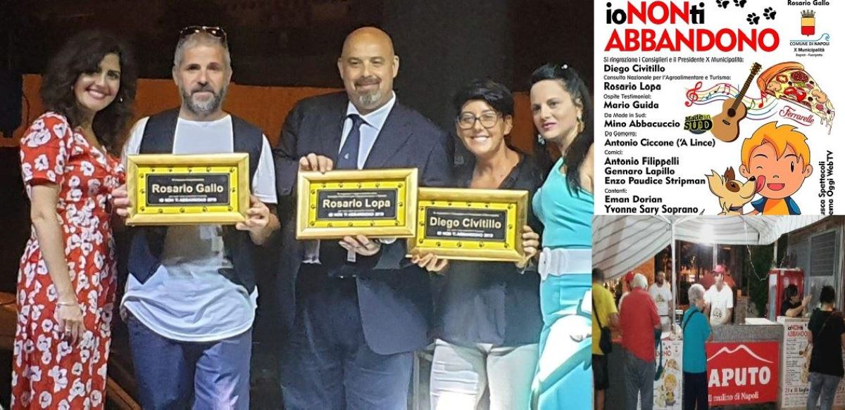 NAPOLI – Da sempre è noto l’impegno e l’amore per gli animali portato avanti dal Maestro Pizzaiuolo Rosario Gallo, del noto Ristorante/Pizzeria, Com cucin ‘a nonn, (Via Agnano Astroni 228, Napoli, nei pressi dell’Ippodromo), cosi da organizzare, con diverse associazioni di commercianti della zona Flegrea in collaborazione con la X Municipalità della Città Metropolitana di Napoli e la Consulta Nazionale per l’Agricoltura e Turismo del mns, “IO NON TI ABBANDONO”, un importante evento di due giorni in Piazza Italia a Fuorigrotta, dove si sono alternati personaggi del mondo dello spettacolo, musica e gastronomia, per sensibilizzare i cittadini partenopei, in difesa degli animali e in particolare contro l’abbandono dei cani.