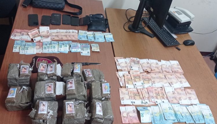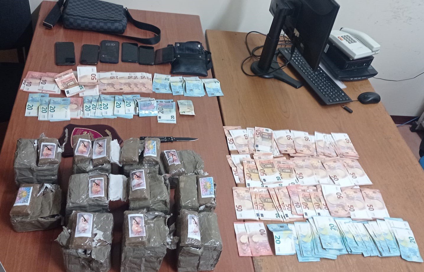 Nel corso del controllo, i poliziotti hanno proceduto a perquisizioni personali estese all’autovettura, all’esito delle quali rinvenivano all’interno del vano bagagli 50 panetti di hashish e una somma di 6.000,00 euro, in banconote di vario taglio, custodita all’interno degli zaini indossati dai fermati.