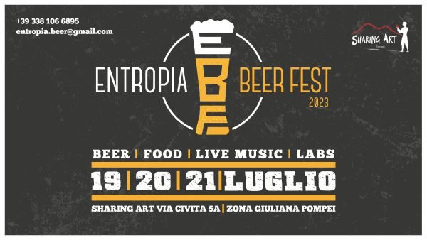 Grazie alla collaborazione di Luca Varone (direttore artistico dello Sharing Art) e di Emanuele Ambrosino, Ugo Oropallo e Carmine D’Aniello (direttori artistici dell’Entropia Beer Fest e proprietari del Pub27 di Pompei e Craft27 di Torre Annunziata), anche per l’edizione 2023 l’Entropia Beer Fest, propone un programma che ha come scopo principale quello di far immergere il pubblico in una realtà unica ed imperdibile, al fine di rilassarsi e divertirsi in queste calde serate estive.
