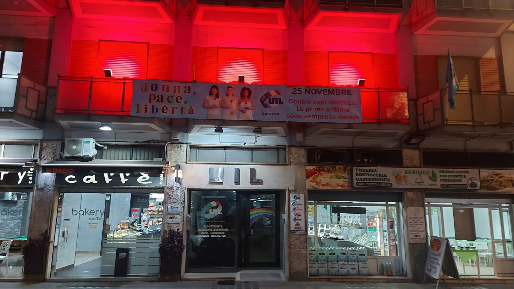 sempre di più, l’esterno della sede della UIL di Caserta in via Renella n. 58, sarà illuminata di ‘rosso’. Un