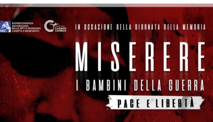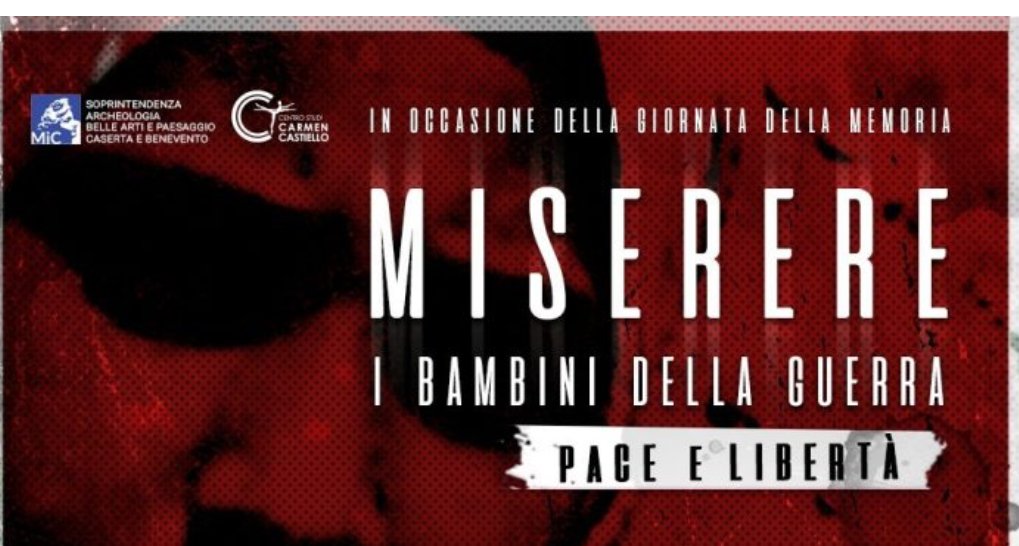 Lunedì 27 gennaio 2025 la Soprintendenza Archeologia belle arti e paesaggio per le province di Caserta e Benevento commemora il Giorno della Memoria ospitando il suggestivo spettacolo “Miserere. I bambini della guerra: memoria e libertà”, a cura del Centro Studi Carmen Castiello e della Compagnia Balletto di Benevento, alle ore 16.30, presso il Centro Operativo di Benevento – Ex Convento San Felice.