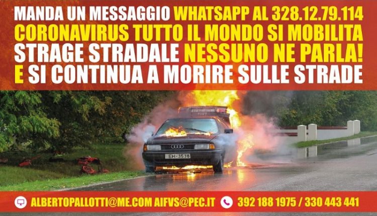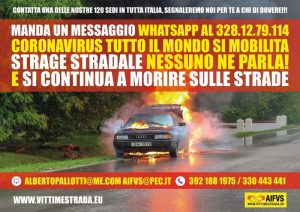 A lanciare la campagna è il presidente dell’AIFVS, Alberto Pallotti, che spiega: “Nel nostro Paese, gli incidenti stradali sono una pandemia come il coronavirus. Ma, nonostante i nostri ripetuti appelli alle istituzioni, manca ancora una mobilitazione generale per la sicurezza stradale. Eppure, non passa giorno senza che sulle nostre strade non si verifichi una tragedia. Solo nella giornata dell’8 marzo 2020 abbiamo contato tre vittime: due cugine sono morte a Roma in uno schianto sull’Aurelia e una giovane mamma è stata travolta e uccisa da una macchina ad Aversa, in provincia di Caserta.