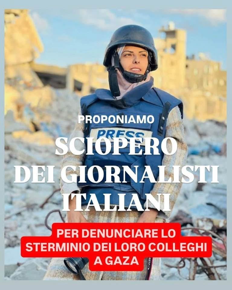 Si proclami lo sciopero dei giornalisti italiani contro lo sterminio delle loro colleghe e dei loro colleghi a Gaza. Un massacro per impedire di far conoscere al mondo il genocidio.