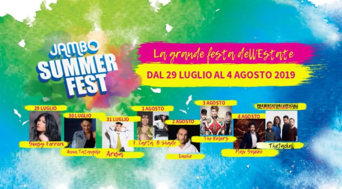 All’interno dell’area parcheggio del centro commerciale Jambo dal 29 luglio al 4 agosto, vedremo susseguirsi ospiti importantissimi come Arisa, The Kolors, Anna Tatangelo, Giusy Ferrero, Luché e tanti altri che nell’esclusiva Casa Jambo assaggeranno le fantastiche pizze di Della Volpe.