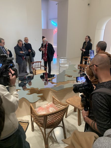 Maffei, a sua volta, ha sottolineato il legame della mostra con altri percorsi espositivi della Reggia, come Frammenti di Paradiso e Visioni. “Organizzare un evento di questa portata in un luogo così speciale come la Reggia di Caserta significa interpretare il nostro patrimonio storico con occhi diversi” La Direttrice ha poi chiesto a Pistoletto quale fosse il senso di una sua mostra nella casa di un Re.