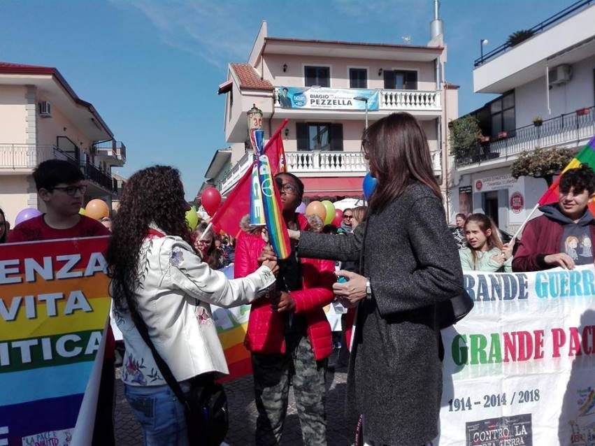 Siate infaticabili ed instancabili costruttori di Ponti per accendere la luce della fiaccola, la nostra “Fiaccola della Pace” ed issarla sulle macerie disseminate di questo mondo in preda alle guerre causate da chi ancora cammina ostinatamente per il verso contrario, che non è riuscito a far crollare quei macigni di odio che hanno avvelenato il proprio agire. Ed issiamo questa Fiaccola anche sulle nostre Terre avvelenate e violentate dai veleni tossici. Abbiate il coraggio di trovare sempre la forza di Costruire Ponti di PACE, vincendo il male con la forza del Bene! Siate infaticabili provocatori di Nonviolenza. La Pace infine, si impara sui banchi di scuola.