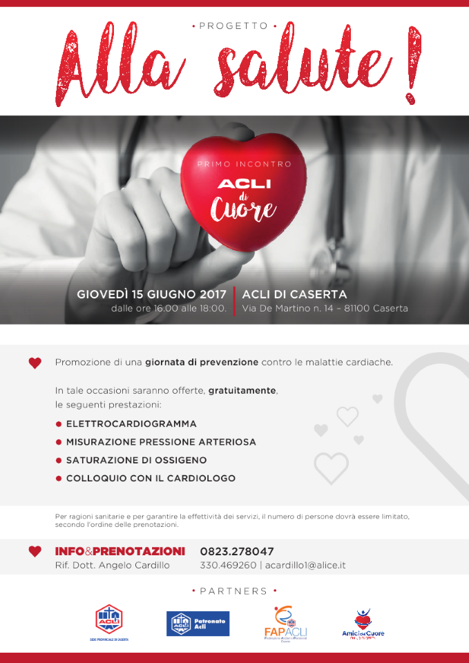Le Acli di Caserta, con l’impegno diretto del Patronato Acli e della FAP Acli (Federazione Anziani e Pensionati), intendono avviare una “campagna di promozione della salute”, mediante iniziative specifiche destinate a trasmettere alla comunità informazioni semplici e chiare sulla prevenzione, ad ogni livello.