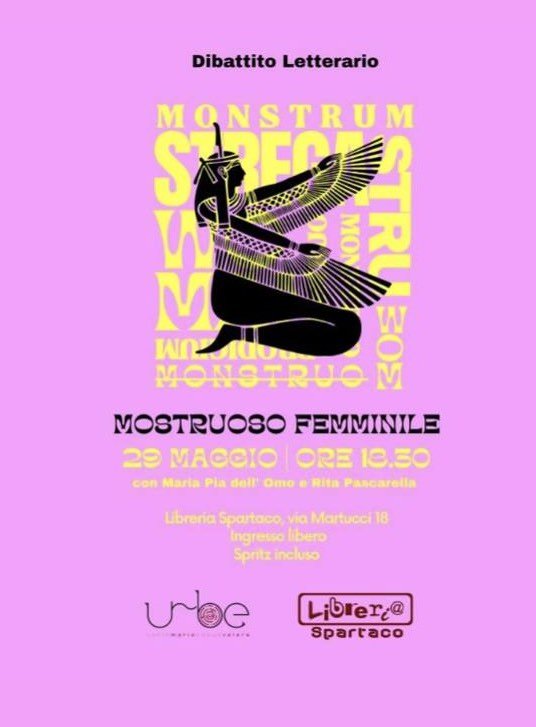 Il 29 maggio 2025 alle ore 18:30 nella cornice della Libreria Spartaco in via Alberto Martucci, 18, 81055 Santa Maria Capua Vetere, si terrà un evento che esplorerà le figure femminili mostruose nella letteratura e nella cultura pop. L’evento è organizzato in collaborazione fra l’Associazione URBE smcv APS e la Libreria Spartaco.