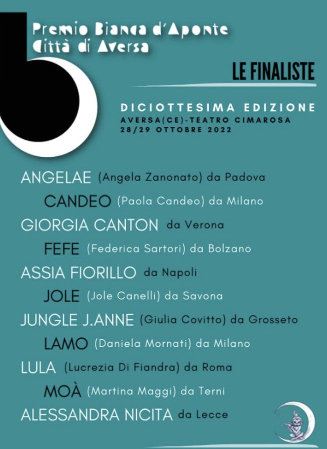 Per ulteriori informazioni: 336 694666 – 335 5383937; info@biancadaponte.it – info@premiobiancadaponte.it
