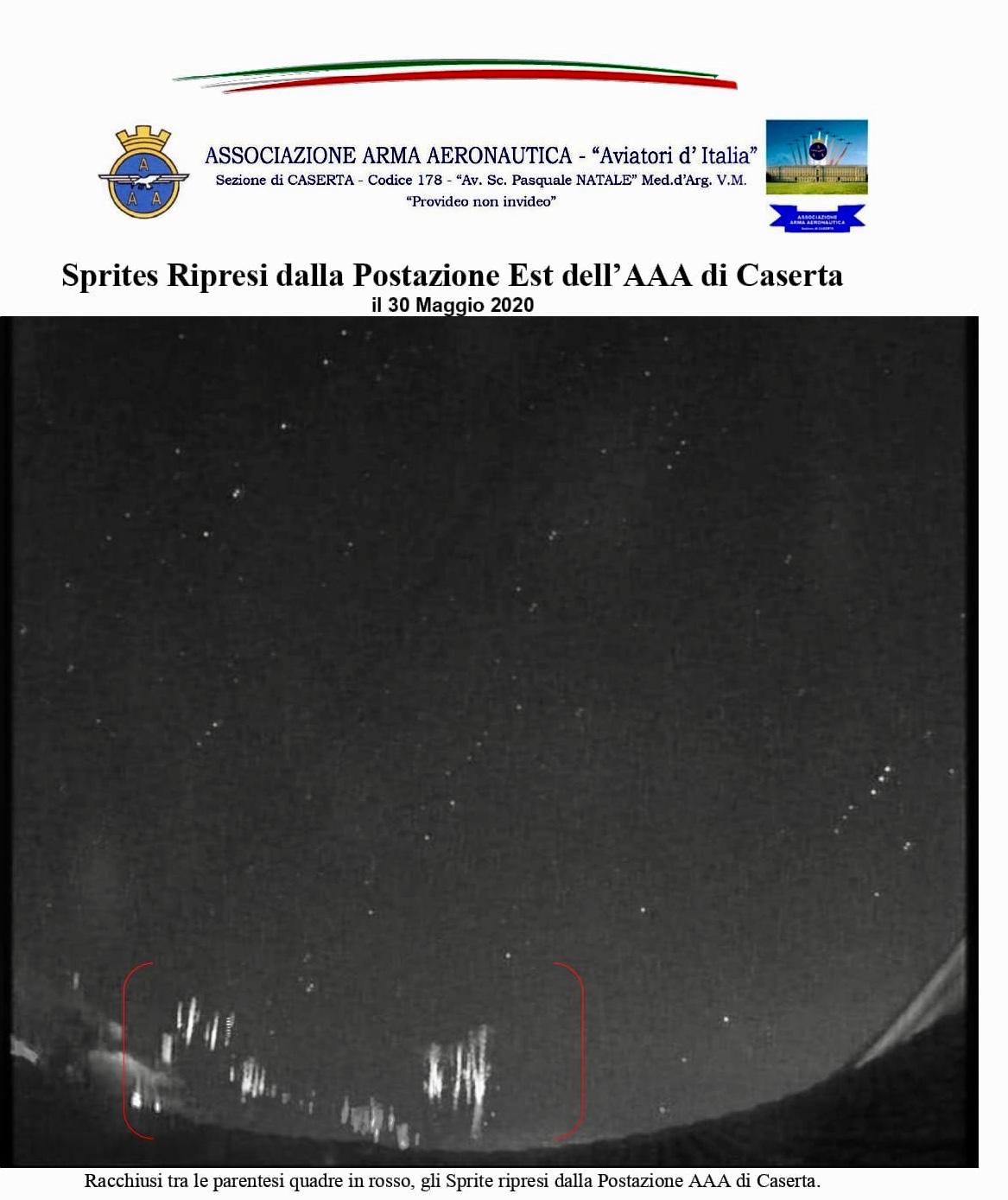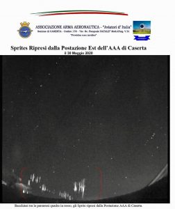 Maddaloni, presso l’abitazione del giovane Socio Francesco Ianniello, e puntata in direzione Est con un angolo di elevazione di circa 40° ha rilevato una numerosa Famiglia di Sprites, almeno 30. (*).