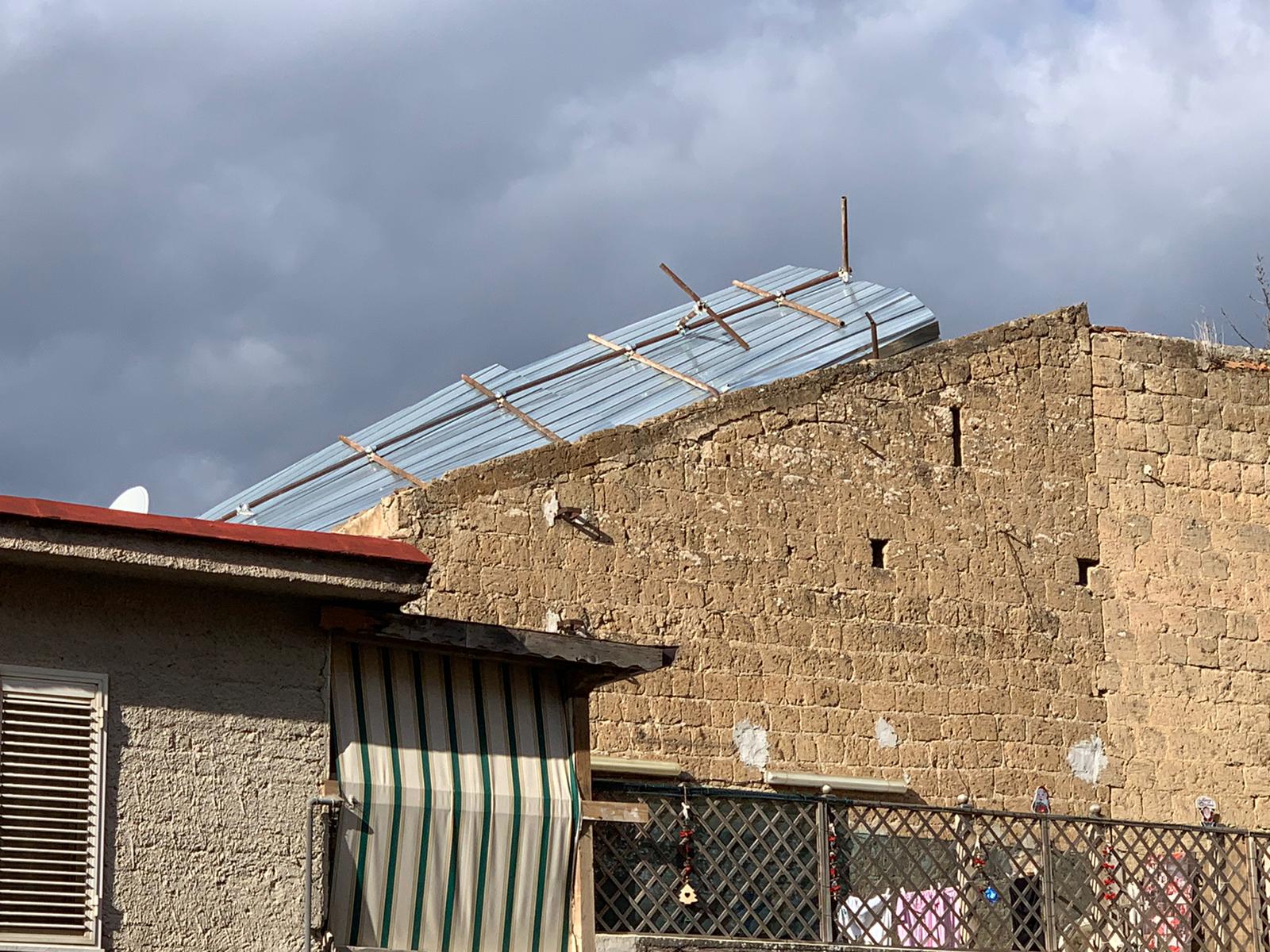 Il tetto non esiste più e, per evitare che ci piovesse dentro, tempo fa, a detta di alcuni residenti della zona, sono stati spesi parecchi soldi per ricoprirlo con una tettoia di alluminio. Questa tettoia va continuamente messa in sicurezza. Ne parlammo di recente, quando il 21 novembre, a causa del vento forte rischiava di volare via. Furono allertati anche la Polizia Municipale locale e i Vigili del fuoco per un intervento chiaramente provvisorio. Le forti piogge di questi giorni hanno ulteriormente destabilizzato questa precaria copertura che rischi di diventare un serio pericolo.