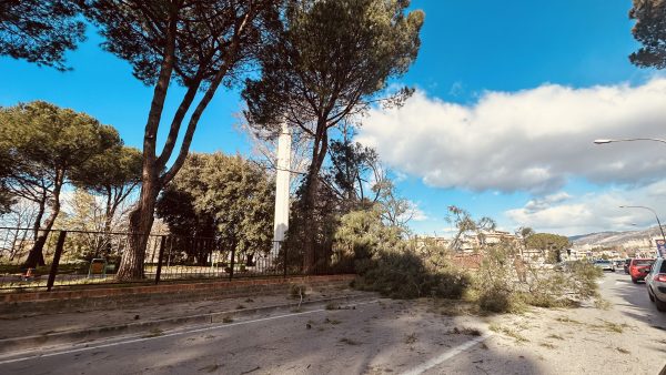 Maddaloni – Come annunciato è arrivato il gelo dal nord-est e la bufera di vento di stanotte non ha tardato ad arrecare danni. Nella villa comunale di via Imposimato il secolare pino che si trovava nell’angolo sul lato di via Campolongo è stato abbattuto dalle forti raffiche di vento di stanotte. L’albero, seppur robusto, si è spezzato in due cadendo sul lato di via Libertà, distruggendo la recinzione e invadendo la carreggiata con i rami. I tecnici del comune sono già al lavoro per la rimozione. Al momento non ci sono giunte altre segnalazioni, ma visto il vento forte che proseguirà per tutta la settimana si consiglia di mettere in sicurezza e prudenza negli spostamenti.