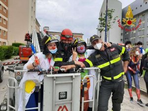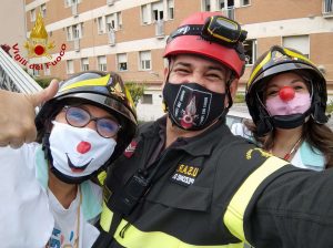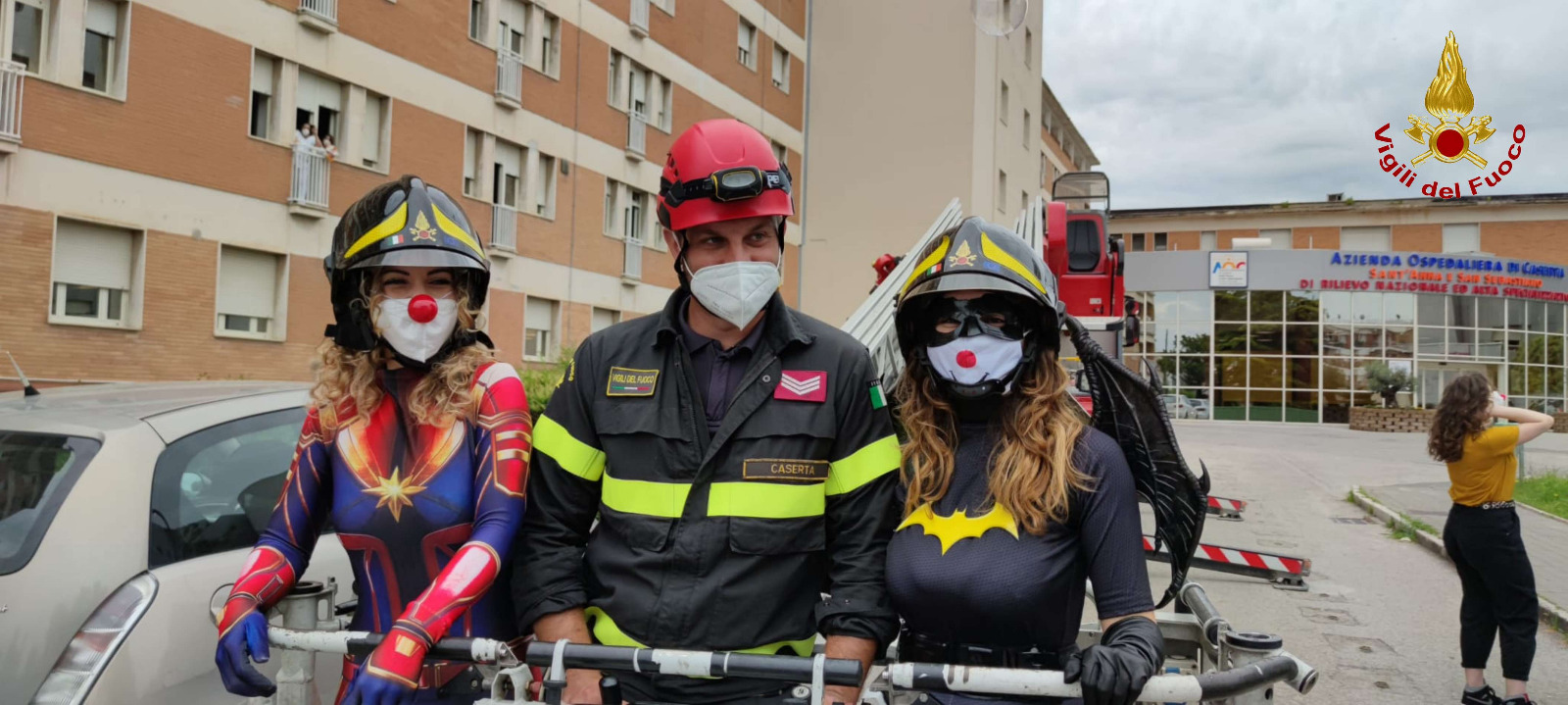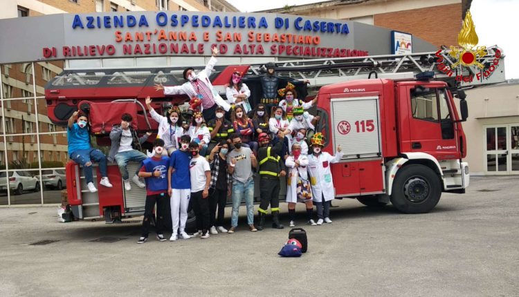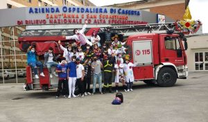 Caserta.Questa mattina i Vigili del Fuoco del Comando provinciale di Caserta hanno partecipato alla manifestazione “Maratona del sorriso” organizzata presso l’azienda ospedaliera Sant’Anna e San Sebastiano di Caserta. I Vigili del Fuoco con la loro presenza, insieme alla Onlus “Teniamoci per mano”, hanno voluto esprimere ai bambini che soffrono la loro vicinanza che da sempre contraddistingue il Corpo Nazionale. Lo scopo della manifestazione è stato quello di portare un sorriso a tutti i piccoli degenti presenti nel reparto di pediatria dell’ospedale accompagnando ed assistendo, anche con un’autoscala proveniente dal Comando, il personale della Onlus che si era vestito con maschere di pagliacci e super eroi dando luogo a delle piccole scenette comiche che hanno intrattenuto tutti i presenti.