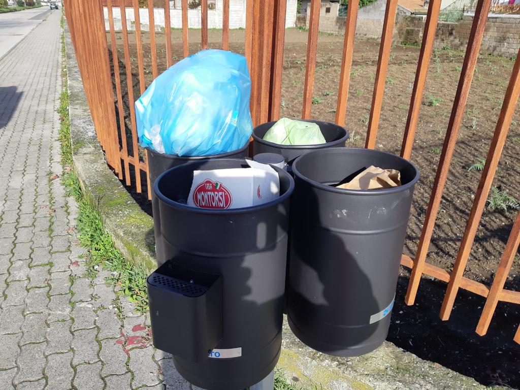 Nella strada in questione sono stati installati da un pò di tempo, cestini per la raccolta differenziata ( plastica, alluminio e multimateriale), proprio per dare la possibilità ai podisti di disfarsi di un brick o una bottiglietta vuota, che solitamente si porta con sé. Invece non si può gettare neppure un fazzoletto, poichè, come si vede dalle foto, i cestini vengono utilizzati come bidoni per il deposito dei sacchetti.
