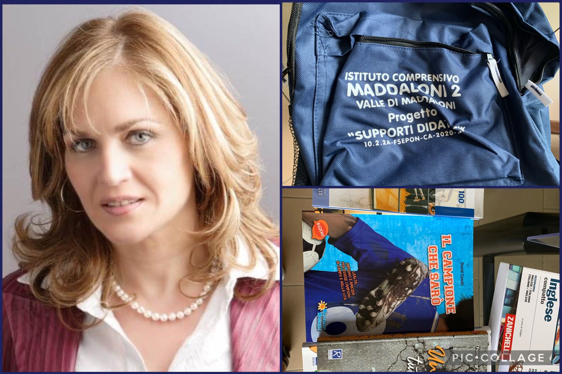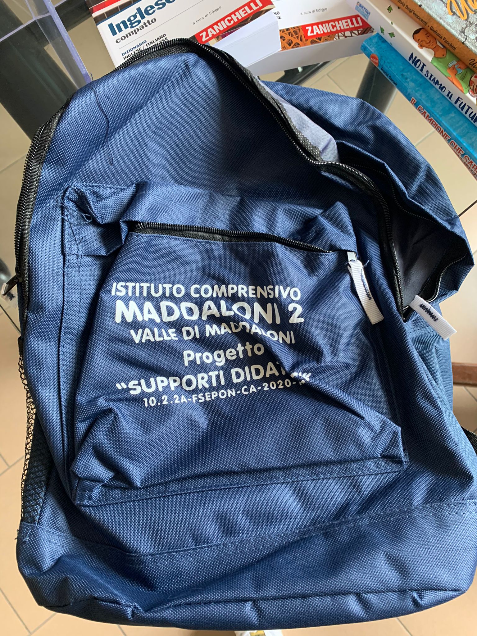 Tra queste spicca il progetto FSE – PON relativo ai supporti didattici. Per questo PON, dedicati agli alunni della scuola secondaria di I grado dell’istituto, e quindi destinato ai ragazzi che frequentano la scuola media De Nicola di Maddaloni e la scuola De Gasperi di Valle di Maddaloni sono stati distribuiti agli alunni delle classi III zaini personalizzati con il nome della scuola contenenti 3 dizionari ( italiano -inglese e francese) e 10 libri di narrativa. Un’idea nuova ed originale, per lasciare agli alunni che saluteranno quest’anno l’istituto un ricordo della loro scuola. All’interno i dizionari, utilissimi e maneggevoli per il percorso di studi futuri insieme a libri accattivanti ed interessanti per rafforzare il legame con la lettura, le storie e e le parole.