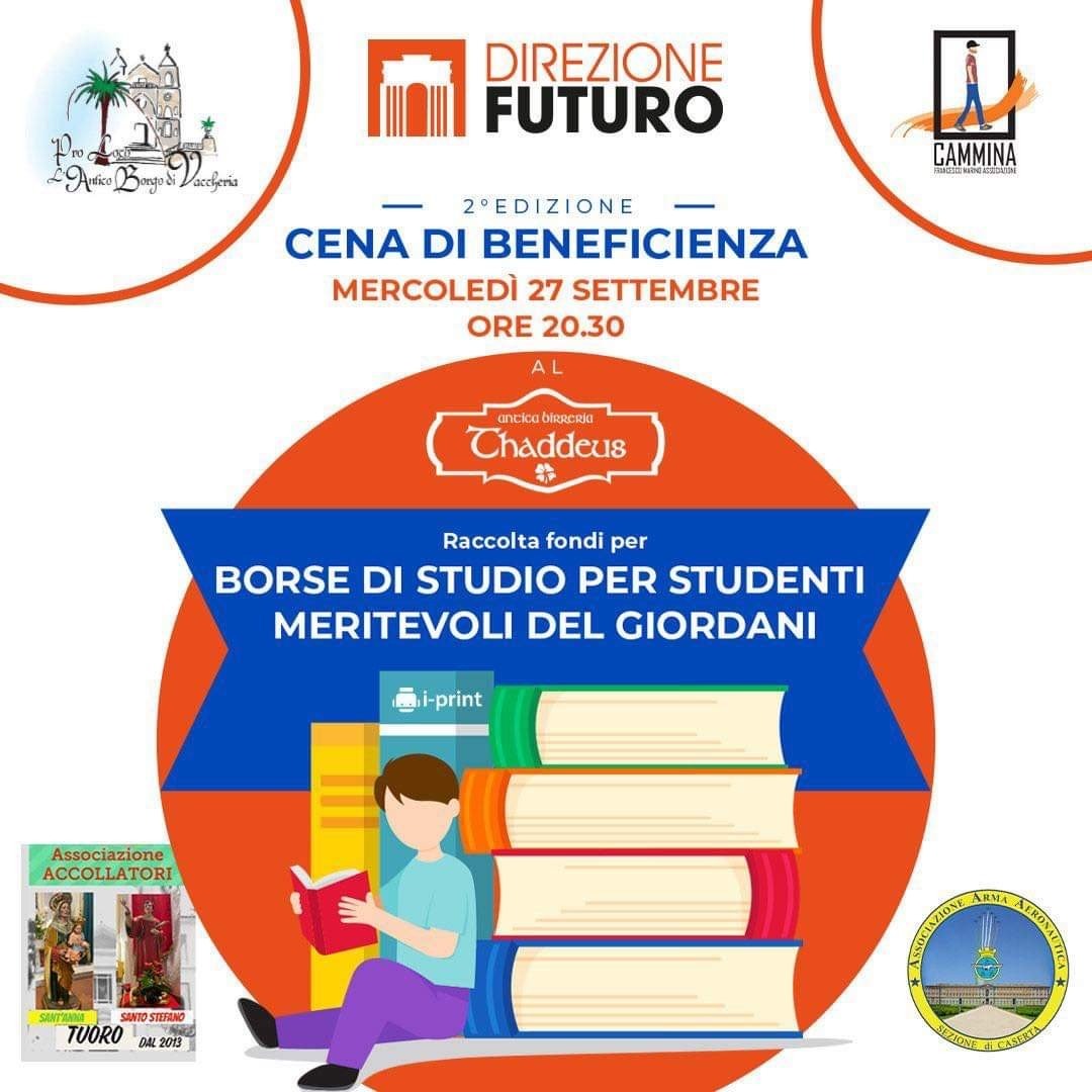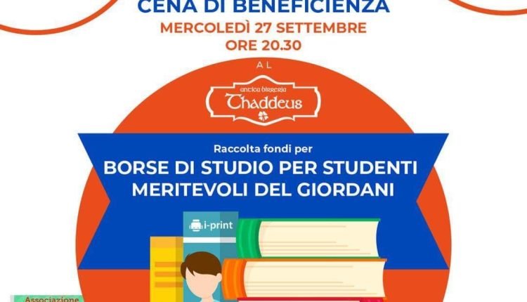 Mercoledì 27 Settembre alle ore 20:30 presso il Thaddeus in Via Ceccano-Caserta avrà luogo la cena di beneficenza nella quale verranno raccolti fondi destinati a borse di studio per studenti meritevoli dell’Istituto Giordani