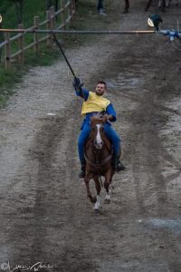 Anche quest’anno i cavalieri delle tre contrade si lanceranno al galoppo per centrare gli anelli, posti lungo il nuovo suggestivo campo di gara. La conquista dello stendardo è il preludio per la proclamazione della contrada reggente, al fianco del Signore del Castello, durante il banchetto finale. Quest’anno, la contrada Torre dovrà difendere la vittoria dello scorso anno, contro la contrada Platano, che vanta il miglior palmares, e la contrada Cavallo, che in tutti questi anni si è affermata solo due volte!