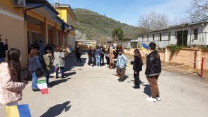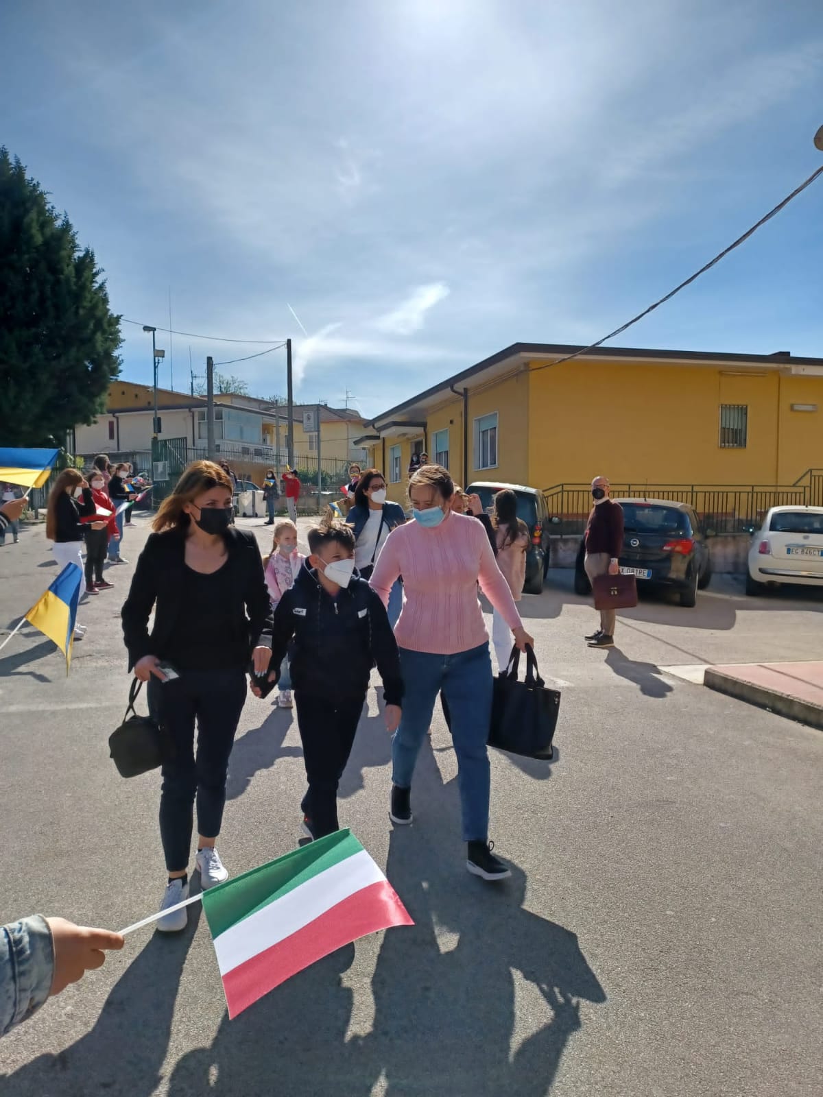 Cervino – Gioia, colori, lacrime, sorrisi e tanta commozione. È così che si può sintetizzare la mattinata appena trascorsa all’ I. C. “Enrico Fermi”di Cervino. L’Istituto, infatti, ha avuto l’onore di accogliere tre piccoli alunni ucraini che, insieme alle madri, sono ospiti di alcune famiglie della comunità cervinese. Bandiere con i colori dell’Ucraina che sventolavano leggere unite a quelle tricolori. E l’orchestra dell’Istituto che ha suonato dal vivo l’inno ucraino e quello italiano. Nessuno è riuscito a trattenere la commozione nel vedere l’emozione negli occhi dei tre bambini che, nonostante l’inferno dal quale sono scappati e che si portano dentro, hanno trovato ad accoglierli un’ intera comunità scolastica in festa.