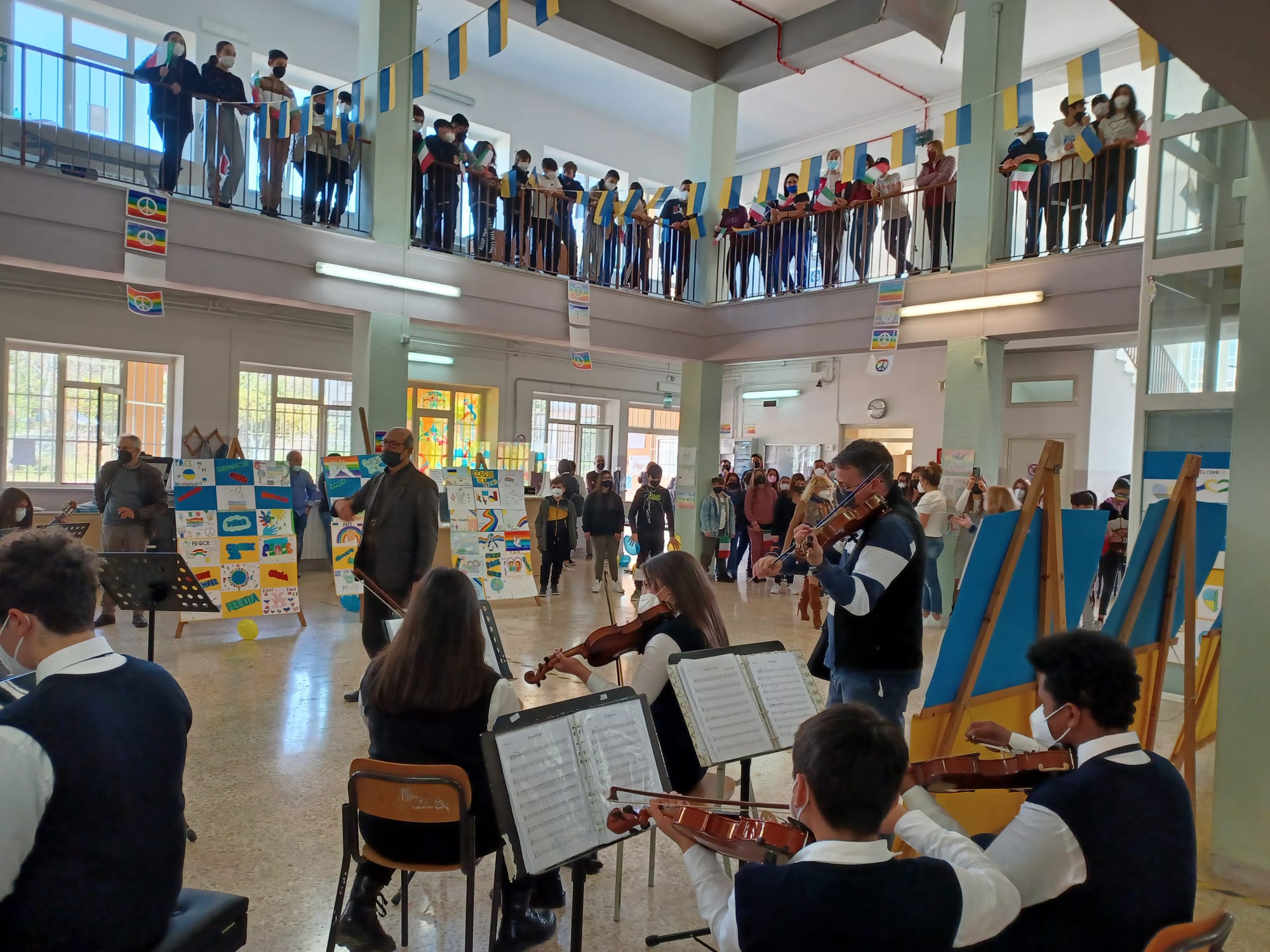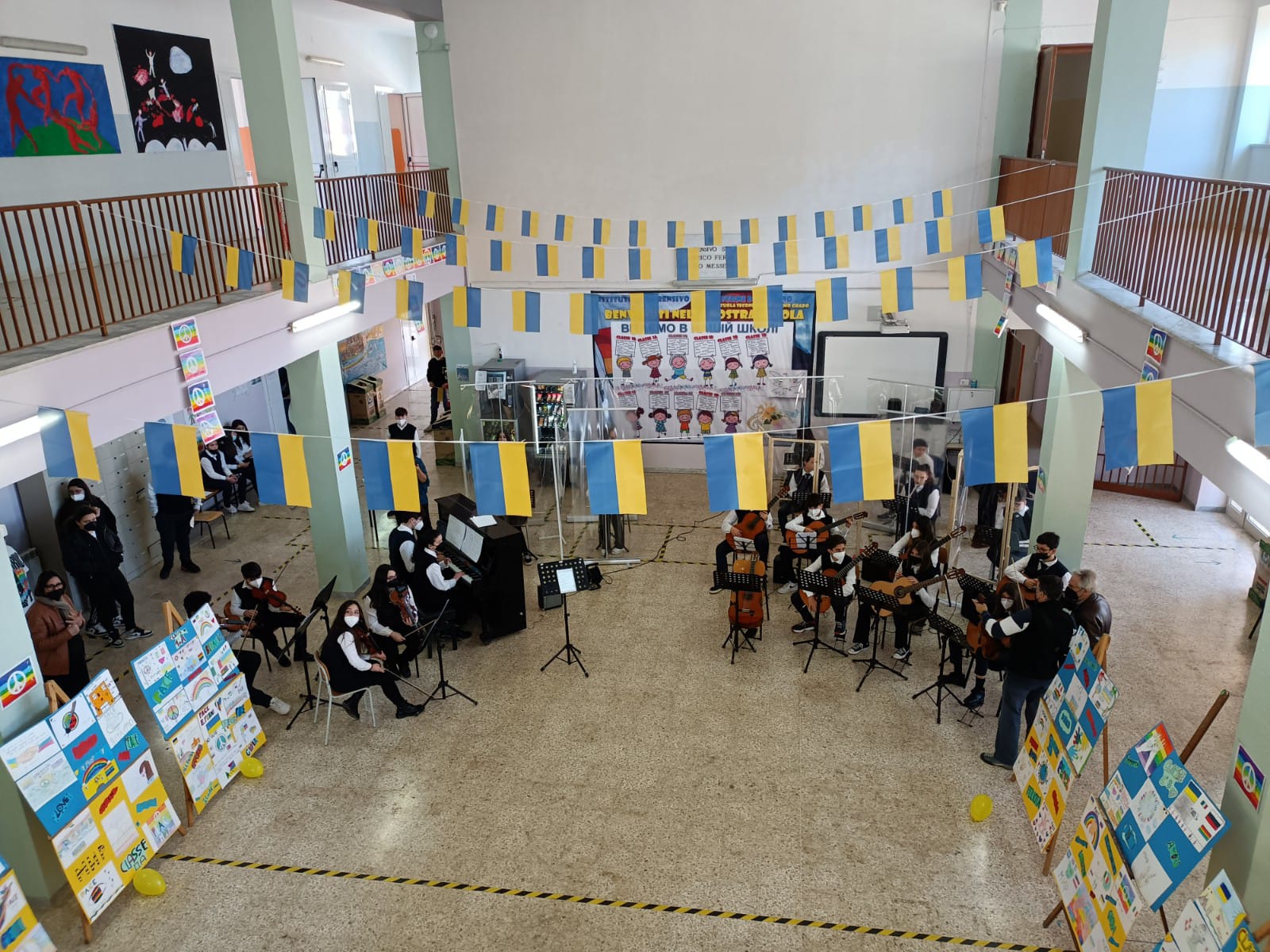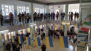 Cartelloni, striscioni, uno zainetto personalizzato pieno di tutto ciò che potrà servire loro per disegnare, scrivere e raccontare. “Oggi il nostro Istituto – dichiara la Dirigente Scolastica Anna Dello Buono – ha vissuto uno dei momenti più toccanti ed emotivamente significativi della sua storia recente. La paura negli occhi di quei bimbi, che ha lasciato poi immediatamente spazio alla meraviglia e alla commozione, sono sentimenti che a parole non si possono descrivere per chi non ha avuto la fortuna di viverli. E le lacrime di gratitudine e di riconoscenza delle mamme sono state la risposta immediata e concreta ai tanti dubbi che in questi giorni ci hanno assalito rispetto alla gestione di una situazione umana che tutti conosciamo, ma che nessuno può davvero capire. La macchina di solidarietà e di amore che si è messa in moto, è stata una sorpresa persino per me. I docenti hanno volontariamente contribuito per l’acquisto del materiale scolastico e di quello con cui gli alunni hanno realizzato i lavori di benvenuto, così come alcuni genitori che si sono fatti carico di sostenere l’Istituto nella realizzazione di questa festa dell’accoglienza, che si è svolta prima presso la Sede Centrale dell’istituto e poi presso il Plesso di Scuola Primaria di Forchia. Una menzione particolare va ai docenti di Strumento Musicale, che, con la performance degli alunni, hanno confermato il linguaggio potente ed universale della musica. Un grande plauso anche ai docenti che hanno trascorso interi pomeriggio ad allestire l’atrio dell’Istituto e ad organizzare l’ accoglienza degli alunni. Il nostro obiettivo – continua ancora la Dirigente Scolastica del “Fermi” di Cervino – sarà infatti creare le condizioni ottimali in cui garantire l’inclusione e l’integrazione dei bimbi ucraini non solo da un punto di vista prettamente scolastico, ma anche e soprattutto da quello umano.