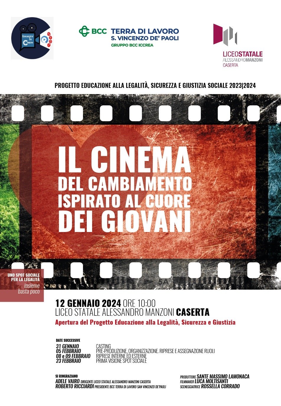 Gli studenti del Liceo Statale “Alessandro Manzoni di Caserta” sono pronti a salire sul set per il progetto “Legalità in Corto”, ideato dal Dott. Sante Massimo Lamonaca e realizzato grazie alla collaborazione artistica del regista e film-maker Luca Moltisanti insieme alla sceneggiatrice Rossella Corrado.