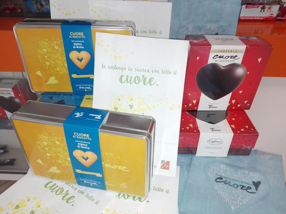 Linea solidale Telethon, presso la “Dea Bendata” di Via Milano si possono acquistare i biscotti ed i cuori di cioccolato