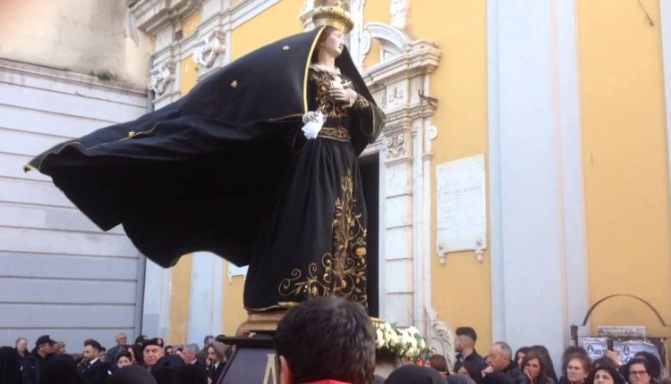 Maddaloni – La città di Maddaloni vanta un’antica e singolare processione, organizzata da Gennaro Cassaro,  che si svolge nel pomeriggio del venerdì che precede la Pasqua. Non una semplice via Crucis, ma un corteo funebre, molto suggestivo, un cui ad accompagnare le statue della Passione di Cristo ci sono centinaia di donne, completamente vestite di neo, che scalze e con il volto coperto, per fede, devozione, voto o penitenza, partecipano a questa sacra ritualità. Le donne portano in corteo i vari simboli della storia della morte e crocifissione di Gesù intonando un canto che ha radici antiche e si tramanda da generazioni.