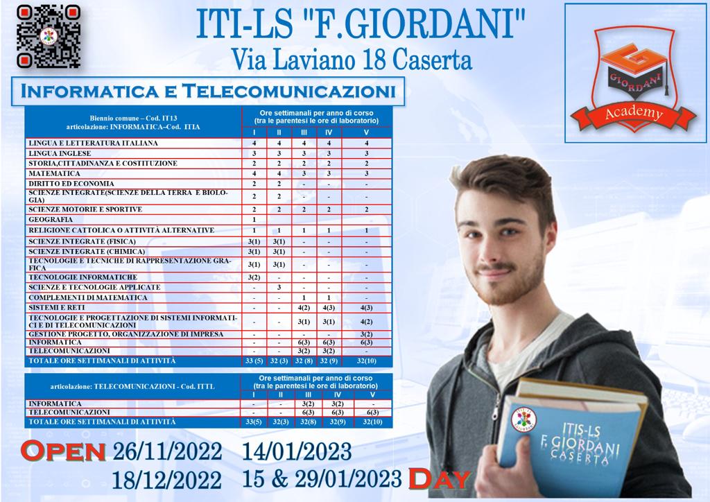 L’ITI-LS “F.GIORDANI” di Caserta, nella nuova veste di Giordani Academy, riapre le sue porte il 18 dicembre dalle ore 09:00 alle ore 12:30 in occasione del secondo openday, dei 5 previsti. La Dirigente dell’istituto, dott.ssa Antonella Serpico, propone a tutti coloro che visiteranno l’istituto, molteplici attività: le esperienze organizzate nei 38 laboratori che vanta il Giordani, ad un magnifico viaggio alla scoperta della realtà virtuale e aumentata. Inoltre, una grande novità viene proposta ai nuovi iscritti. Difatti oltre alle 6 specializzazioni del tecnico del Giordani: Trasporti e Logistica, Elettronica e elettrotecnica, Chimica dei materiali e biotecnologie, Informatica e telecomunicazioni, Meccanica e Meccatronica, Sistema Moda; Il Liceo scientifico opzioni scienze applicate del Giordani, già noto per essere sempre all’avanguardia anche in virtù di una didattica innovativa adottata dalla scuola, potenzia la conoscenza dell’informatica introducendo la curvatura: “Scienza dei Dati e Intelligenza artificiale”. L’intelligenza artificiale è infatti un tema cardine del dibattito scientifico attuale, destinato ad acquisire sempre maggior rilevanza e centralità nella nostra società, tanto da essere considerato chiave per il rilancio dell’economia e la trasformazione digitale nel Piano della rispesa dell’Europa. Con la curvatura “Scienza dei Dati e Intelligenza Artificiale”, il Liceo del Giordani si propone di offrire agli studenti una preparazione in linea con le nuove offerte del mondo Accademico. L’obiettivo è di costruire competenze negli ambiti dell’analisi dei dati, della pianificazione, del ragionamento ed apprendimento automatico, dell’etica dell’intelligenza artificiale, dell’interazione uomo-macchina e della robotica. Saranno infatti potenziate le competenze informatiche consolidando il pensiero logico e le capacità di analisi e astrazione, utili anche per le altre discipline scientifiche, attraverso la gestione di diverse tipologie di dati e l’applicazione di modelli di Machine Learning e Deep Learning, i due rami dell’Intelligenza Artificiale che creano sistemi in grado di apprendere per poi simulare l’intelligenza umana in contesti specifici. Ogni ulteriore informazione è disponibile all’indirizzo: www.orientamentogiordanice.it. Non resta quindi che esplorare l’universo del Giordani Academy nelle date previste per gli openday: