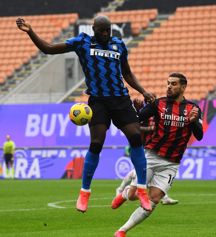 MILANO STADIO SAN SIRO- Si è giocato il derbyssimo al vertice, tra Inter e Milan allo stadio Meazza di Milano ebbene il tre a zero a favore dei neroazzurri non ammette repliche ma andiamo con ordine: nel deserto dello stadio mattatori del pomeriggio di sole sono i due  attaccanti neroazzurri, la pantera Lukaku, ed il toro Lautaro che con una doppietta asfaltano i cugini rossoneri. Parte forte l’Inter e proprio un ricamo di Lukaku, dalla destra, con un cross preciso, pesca la testa di Lautaro el toro invasato di testa trafigge Donnarumma. Primo tempo leggermente meglio l’Inter, ripresa il Milan cerca il pari di rabbia, ma nel momento migliore dopo una doppia incornata di Ibrahimovic, che si carica la squadra sulle spalle e chiama al doppio miracolo Handanovic nel giro di pochi minuti dopo, arriva in raddoppio interista contropiede con Lukaku (il solito) apertura per Perisic, cross a pelo d’erba,  come un falco spunta Lautaro da pochi passi rasoterra che spiazza Donnarumma passando tra le sue gambe. L’Inter festeggia delirio di felcità ma non finisce qua, sule ali dell’entusiasmo, contropiede a centrocampo ancora Lukaku  leader dell’ attacco stoppa un pallone nel cerchio di centrocampo discesa di forza e rasoterra radente, un missile terra terra che trafigge e buca ancora la rete ed Handanovic. La festa nero azzurra può iniziare vittoria e primato davanti ad un Ibrahimovic abbastanza deluso la cui mimica facciale dice tutto. L’ Inter vola in vetta, la Serie A  cambia padrone e si va sull’altra sponda del naviglio.
