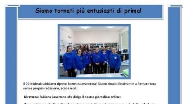 SAN PRISCO – L’Istituto autonomo comprensivo di San Prisco è tra le scuole vincitrici del concorso dell’Ordine dei giornalisti “Il giornale e i giornalismi nelle scuole” – edizione 2020. Un premio ottenuto con il “Corriere dell’Istituto”, giornalino realizzato dai giovanissimi studenti che hanno formato una vera e propria redazione. Un progetto PON iniziato tre anni fa, coordinato dalla dirigente scolastica Giuseppina CEMBALO, dalla vicaria Teresa DEL VECCHIO e dalle esperte Mariangela MINGIONE e Mena DELLA VALLE.