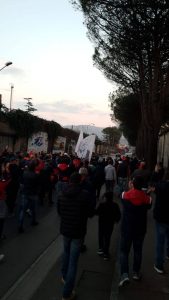 Un vero e proprio fiume in piena in questo momento fuori lo Stadio Pinto. Oltre 300 i tifosi della Casertana (come si vede dalle foto) che hanno deciso di recarsi fuori l’impianto calcistico della città in segno di protesta ma soprattutto per sostenere la squadra rossoblù in vista dell’importantissimo match contro i primi della classe, la Juve Stabia.