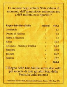 Al momento dell’unità, il regno delle Due Sicilie possedeva riserve auree pro capite doppie rispetto al Nord.