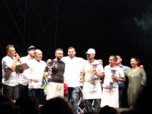 Hanno chiuso poi la serata alcuni tra i pezzi storici del rapper, Int’o rione (questa di quando militava nei Co’Sang) e Che Dio mi benedica. All’inizio della serata sono stati premiati i primi tre classificati per il Trofeo Pizza-categoria pizza classica, i pizzaioli Della Camera Ortensio (3° posto), Konstantin Timoshenko e Davide Amabile (2°posto a pari merito) e Modestino della Pia vincitore della categoria.