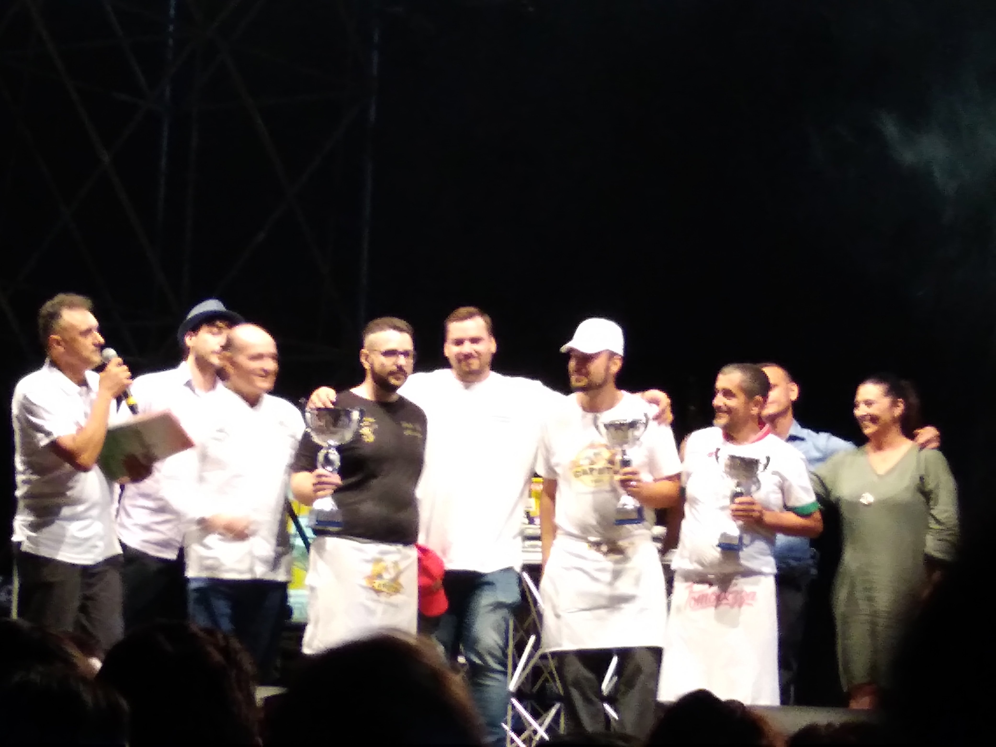 Hanno chiuso poi la serata alcuni tra i pezzi storici del rapper, Int’o rione (questa di quando militava nei Co’Sang) e Che Dio mi benedica. All’inizio della serata sono stati premiati i primi tre classificati per il Trofeo Pizza-categoria pizza classica, i pizzaioli Della Camera Ortensio (3° posto), Konstantin Timoshenko e Davide Amabile (2°posto a pari merito) e Modestino della Pia vincitore della categoria.