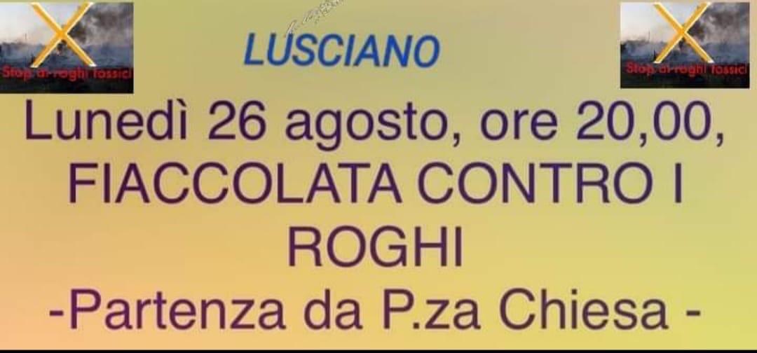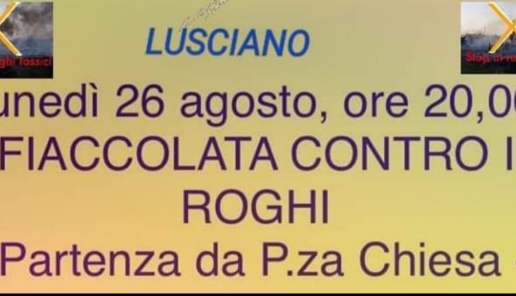 Luciano. Questa sera si terrà una fiaccolata contro la situazione dei roghi in Terra dei Fuochi, ricordiamo che in 48 ore ce ne sono stati ben 12. Parteciperà unanime l’ Amministrazione comunale di Cesa (CE) con il sindaco Enzo Guida. Condividi FacebookTwitterWhatsAppTelegramE-mailStampa