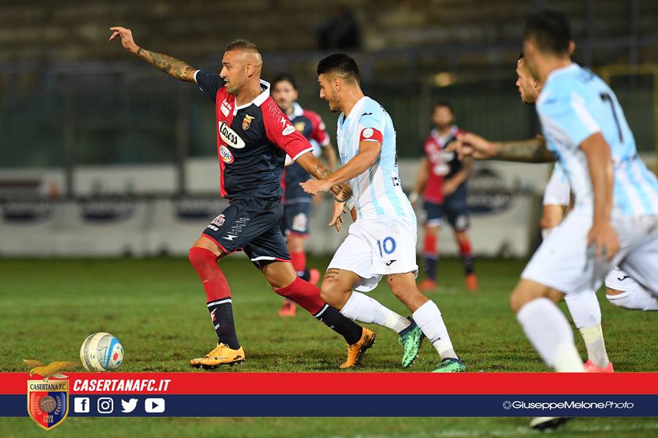 La Casertana dopo aver archiviato la partita con il Bisceglie e la vittoria per tre a zero, ritrova il suo ‘bomber’ grande protagonista insieme a Zito, un autentico motorino sulla fascia mancina, assist man e attaccante aggiunto, ma torniamo all’attaccante, numero 10, nato a Giugliano il 2 maggio1982, napoletano ‘verace’, altezza 184cm, attaccante cuore e grinta che ha militato in varie squadre della serie B e di C1, facendosi apprezzare in area di rigore, spesso puntuale e preciso in zona gol ma capace anche di abbinare una buona tecnica individuale, la carta’ d’identita’ recita anni 37 non piu’ giovanissimo, ma si sta facendo molto apprezzare a Caserta, un acquisto importante, per riportare in alto i falchetti rosso blu’, ha girovagato un po’ in tutta la Campania come si puo’ vedere dalla tabella allegata in basso’ un ‘eccellenza campana’, ‘nomade’ tra Juve Stabia, Avellino, (il giocatore con piu’ gol con i lupi avellinesi, 57 ‘timbri’), Nocera,voluto dal presidente dei rossoblu’, dopo l’esclusione dell’Avellino dalla B, ha raggiunto quota nove gol nella serie C e si è fatto apprezzare per la sua umilta’ e la capacità di adattarsi ad una serie inferiore, come la Serie C (LegaPRO) ed una piazza non ‘facile’ come Caserta vogliosa di risalire verso la Serie B, per il momento lo scettro di capocannoniere è in coabitazione con Paponi, nell’attesa di ritrovare il miglior Floro Flores, spesso alle prese con problemi muscolari, accolto come il ‘salvatore’ della patria per i suoi trascorsi in Serie A, nell’ultimo match comodamente seduto in tribuna fare da spettatore che sta offrendo prestazioni non all’altezza delle aspettative, (oggetto di altro articolo nel nostro giornale ndr).
