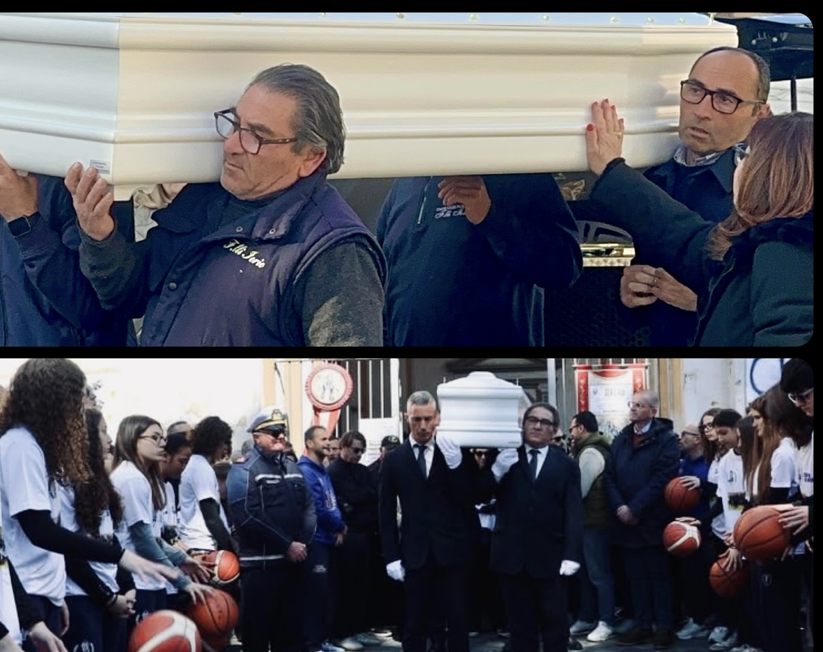 Una chiesa gremita, presenti il sindaco Andrea De Filippo che ha proclamato il lutto cittadino in concomitanza con le celebrazioni, rappresentanti delle istituzioni e delle forze dell’ordine, le compagne di squadra che hanno indossato la sua maglia numero 30 con la scritta “Ciao boss”, e che hanno voluto portarle il loro saluto, uno dei momenti più commoventi della giornata.