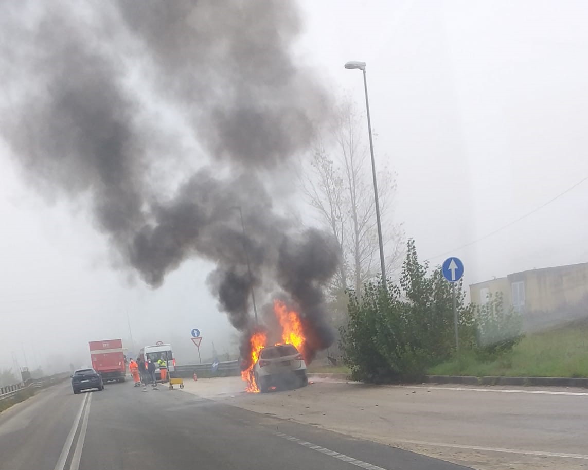 Macchina a fuoco, nei pressi dello svincolo per Nocelleto di Carinola